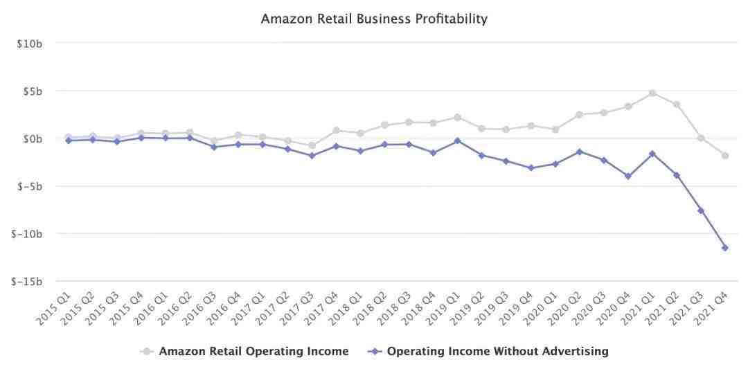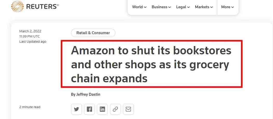 包括亚马逊书店(Amazon Books)、亚马逊四星级店以及亚马逊弹出网站(Amazon Pop Up),但关闭日期将有所不同,具体日期尚未确定。 亚马逊的一名发言人表示,我们决定关闭我们的亚马逊四星级门店、书店和Pop Up门店,并将更多精力放在我们的亚马逊生鲜、全食市场、亚马逊Go和亚马逊Style门店以及我们的Just Walk Out技术上。此外,我们仍然致力于打造优秀的、长期的实体零售体验和技术,我们正与受影响的员工密切合作,帮助他们在亚马逊找到新的岗位。 据了解,2015年,亚马逊在西雅图开了第一家书店,随后,其在零售领域尝试了一系列想法,如:没有收银员的便利店、超市,以及一种名为“四星”的模式,销售玩具、家居用品和其他顾客评分较高的商品。 尽管过去几年亚马逊曾一度大力扩张实体店,但实体店的增长明显落后于该公司整体零售业务。2021年Whole Foods和Fresh部门的营收居然比2018年还低,且亚马逊的季度增长率已经降到2001年以来最低。另外,今年至今亚马逊股价下跌超过8%,相比其它大型科技公司,去年亚马逊股票也是表现最差的。 值得注意的是,2021年8月,数据显示,亚马逊在过去12个月的零售销售额首次超过沃尔玛,成为中国之外最大的零售销售商。 根据FactSet的统计,在截至2021年8月的过去一年时间里,亚马逊的销售额达到6100多亿美元,而沃尔玛的营收约为5660亿美元。受到疫情的刺激,亚马逊过去一年的营收大幅增加。在该季度,亚马逊营收达到1131亿美元,击败苹果、谷歌、微软等科技巨头,同比增长27%。 最新数据显示,2021年,亚马逊零售业务的营业收入为63亿美元。但如果不是广告业务,该公司将亏损248亿美元。因为广告的边际成本几乎为零,因此其广告业务312亿美元的收入几乎全部是利润。 目前,亚马逊的零售业务包括在线销售、实体店、第三方市场、广告和Prime会员。而且所有这些业务的利润都不一样的。亚马逊的财报显示,2021年不包括AWS在内的营业收入为63亿美元,那么减去广告收入312亿美元,就会产生248亿美元的损失。
