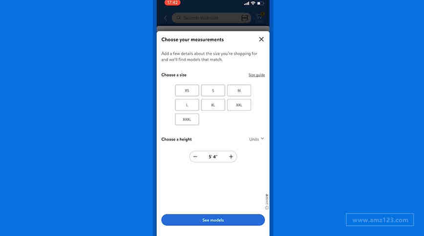 该功能在Walmart应用程序和Walmart.com上均可用,目前支持自有品牌和民族品牌,包括Free Assembly、Scoop、Sofia Vergara的Sofia Jeans、ELOQUII Elements和Timeand Tru。