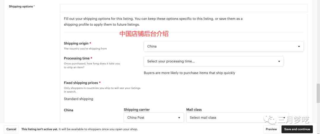 下面我们看一下中国店铺的发货,上架的物流渠道的选择!