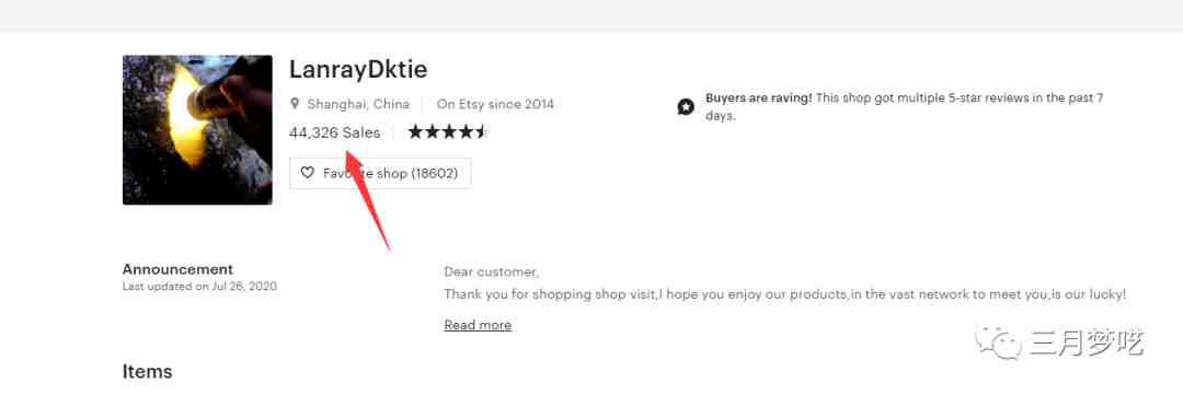 即使是中国店铺,也可以做到不错的销量,一年的销量是44326sales