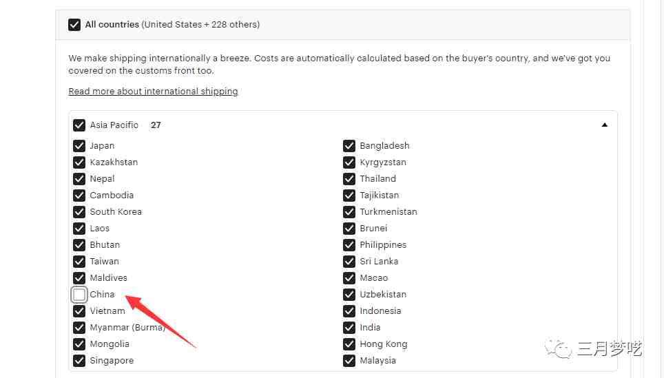 这个是可以自定义卖给哪些国家,可以勾选或者选择不销售的国家