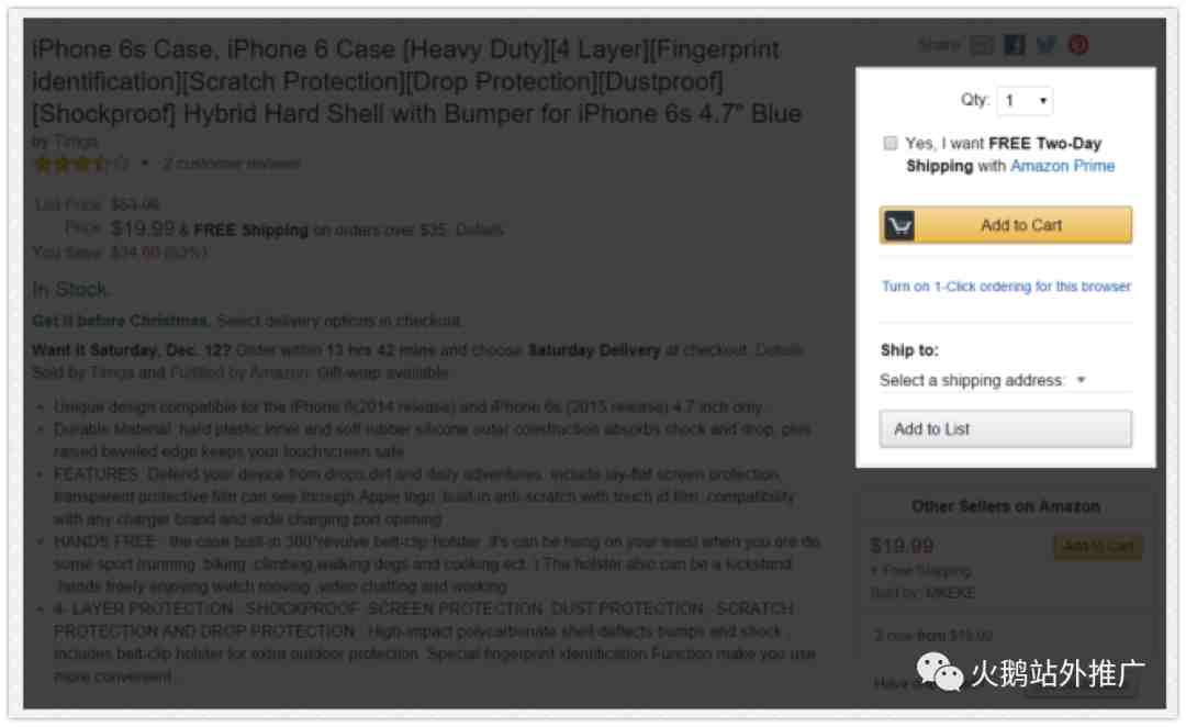若为精选商品可以享有2天内到货免额外加收费用,甚至超过35 美元以上就能有当日到货服务等许多物流优惠。对消费者来说,它能在下订后更快地拿到商品,也就能提高选择你而不是其他竞争对手产品的机会。
