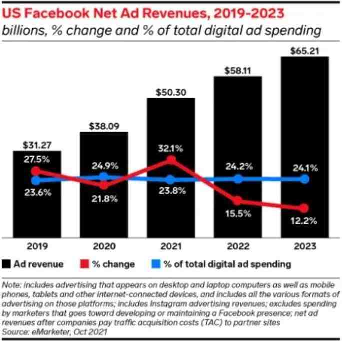 预计2022 年广告商将在 Facebook 广告上花费超过500 亿美元