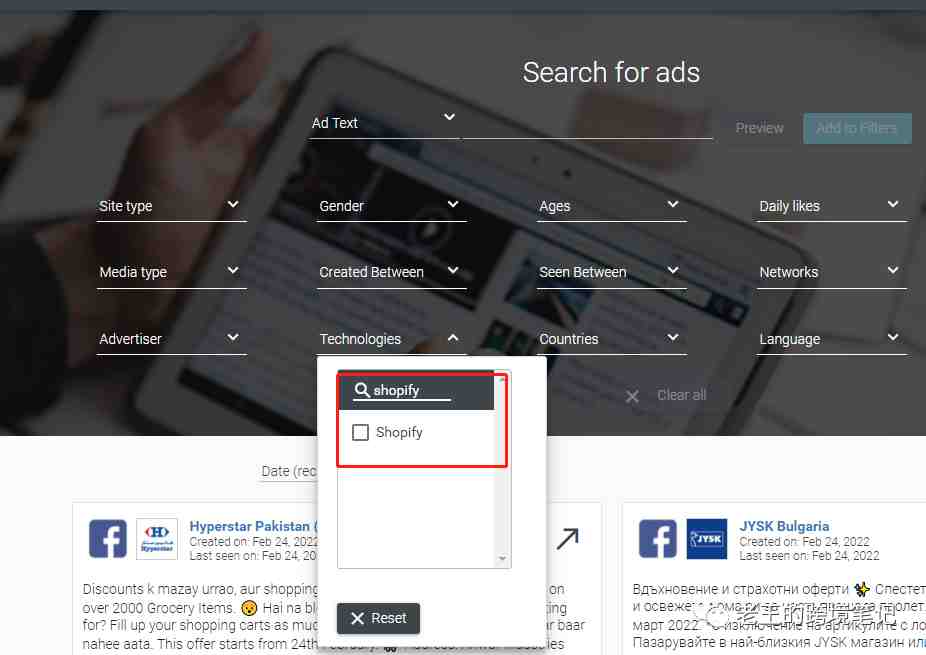 在这个场景下,我们就能获取到最近跑爆的Post 。当然也就看出来具体的产品。如果还需要更细的筛选,我们可以通过Technologies进行过滤。值得注意的是Technologies就不支持国产的SAAS系统了。所以如果你选择了Shopify或者Woocommerce 就只能找到这种类型的建站系统。