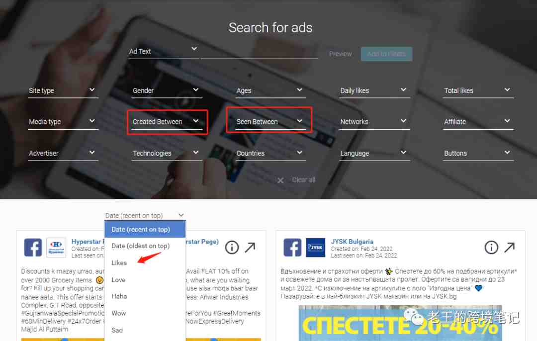 如果你想推某个产品,可以先到AdSpy上搜索相应关键词,按照Likes倒序,查看市场上已经推广的情况。值得注意的是有的产品可能有多个关键词,可以逐个进行搜索!