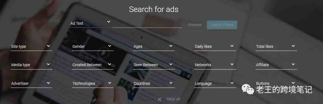 AdSpy是世界最大的Facebook和Instagram广告搜索数据库查询之一,它提供了多种搜索选项,用户可以轻而易举的找到需要的信息。