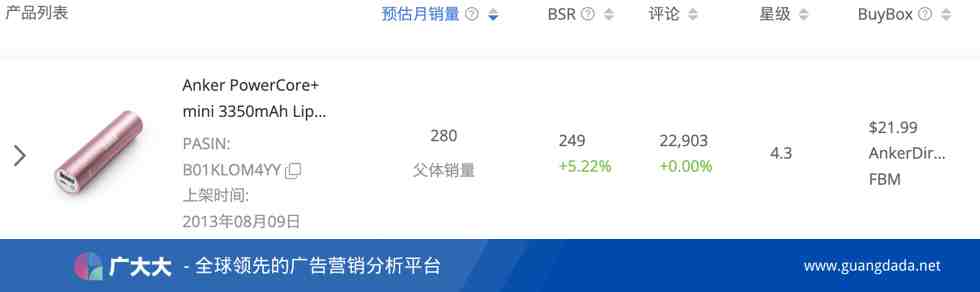 知名跨境电商品牌Anker就通过捕捉电商平台的搜索关键词趋势变动来判断用户的需求变化。Anker曾发现用户对小巧型的充电宝搜索量急速上升,据此开发了一款可放入口袋的小型充电宝,迅速占领市场,销量破百万,根据广大大数据,该产品至今仍有不错销量。