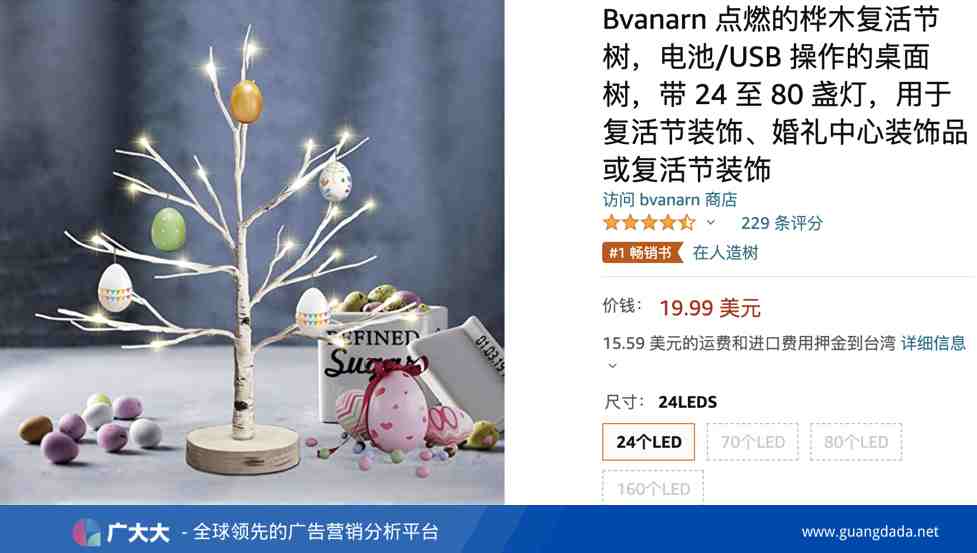 以下面这款产品为例,这是一个可发光的复活节树装饰品。这款产品的销量、评分都不错,但从它的评论区,你可以找到这款产品的问题。