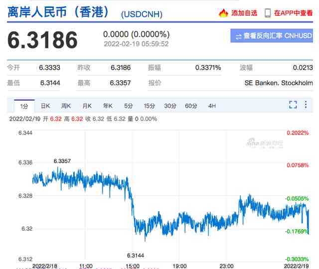 2月18日,离岸美元兑人民币汇率突然大幅下挫,一度跌破6.32的关口,触及自2018年5月以来近4年的新低6.3144。