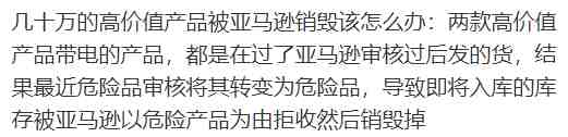 根据亚马逊的规定,运往亚马逊运营中心的危险品即使尚未被亚马逊鉴定为危险品,仍可能会被弃置而不予赔偿。