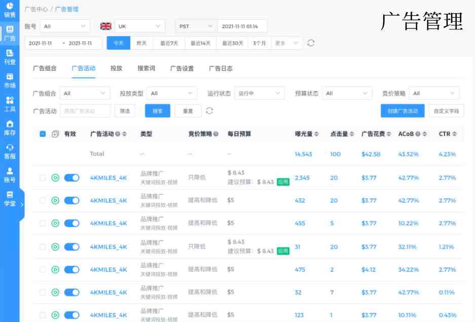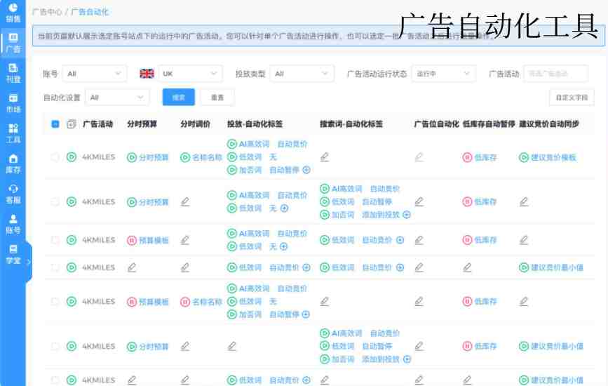4KMILES运营系统的广告管理、广告自动化等多款广告工具可帮助卖家轻松优化管理站内广告!