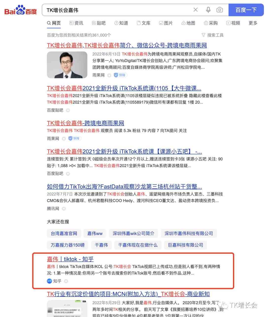 另外,我们发现TikTok页面在谷歌搜索中的权重还蛮高的,类似像知乎和百度,知乎问答的网站在百度搜索的权重很高。