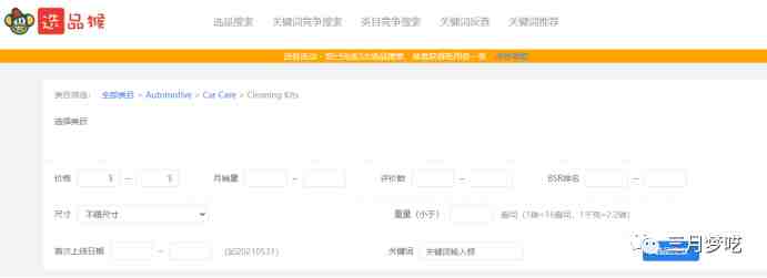 可以看到除了类目选择之外呢,选品猴还提供了丰富的其他参数,方便我们更加的精确的分析我们的竞品。