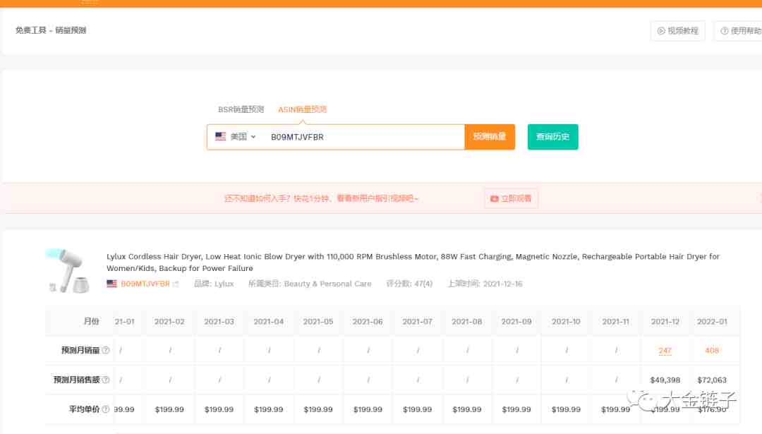 2.销量预测:卖家精灵这个免费的销量预测可以为我们选品提供参考。可以为我们判断市场容量做基础判断。