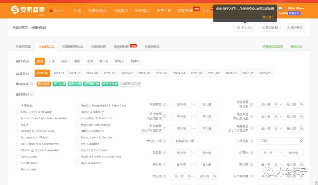 链接地址:https://www.sellersprite.com/v2/keyword-research