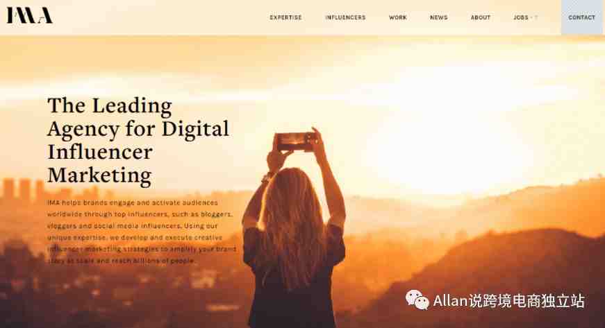 IMA Agency 是一家提供全方位服务的 Influencer营销机构,拥有一支由内部策略师、内容制作人、设计师、分析师和其他专家组成的团队。该机构为 Nivea Men、Tommy Hilfiger Eyewear 和三星等客户提供真正的端到端 Influencer营销服务。