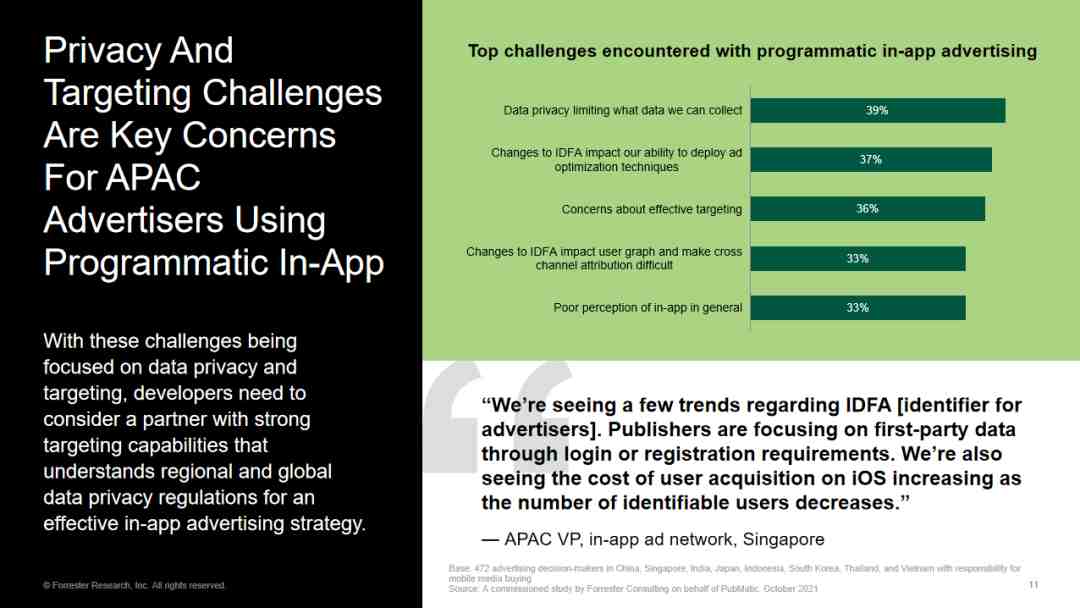 对于开发者或者广告主来说,我认为早期一个比较合理的应对措施还是去寻找一个优质的全球化服务商进行合作,这里的服务商包括像 SSP、变现聚合平台或是数据平台。相较于普通企业来说,这些服务商对这些法律的更新或是对数据的洞察力拥有更深入地研究和理解,也能通过多方位的建议来帮助我们匹配业务中的用户获取需求和变现需求。