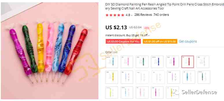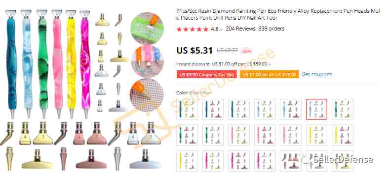 平台搜索关键词 Diamond Painting Pen 后我们发现不少产品都是有侵权风险的,建议及时下架有侵权风险产品,避免中招了!