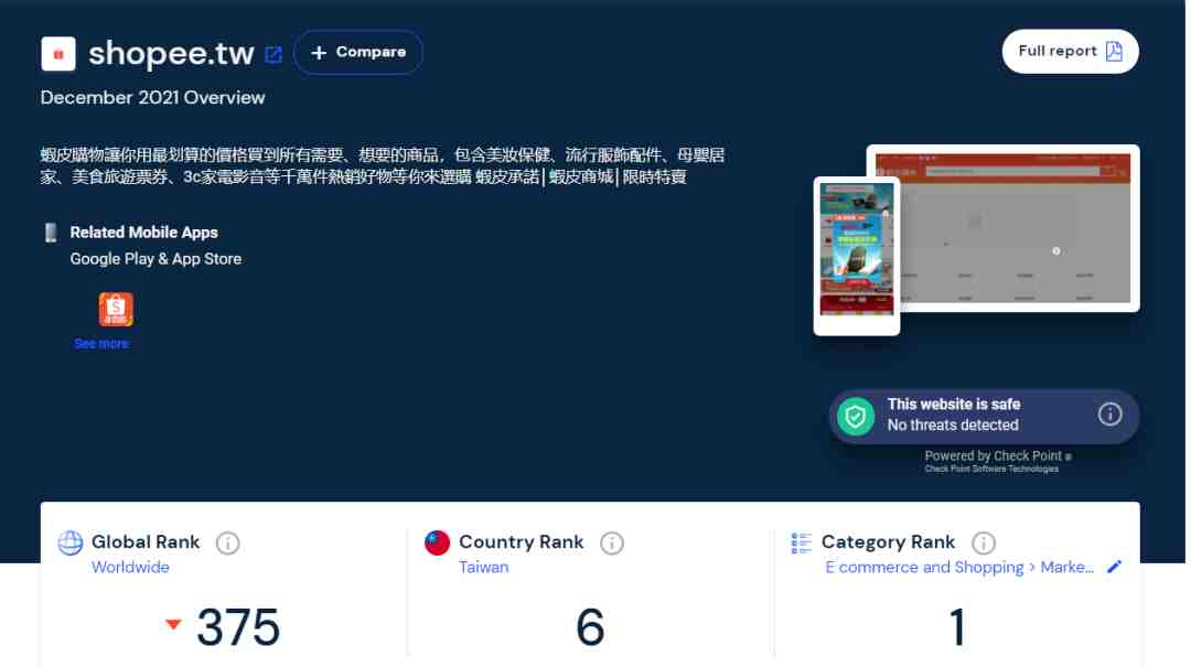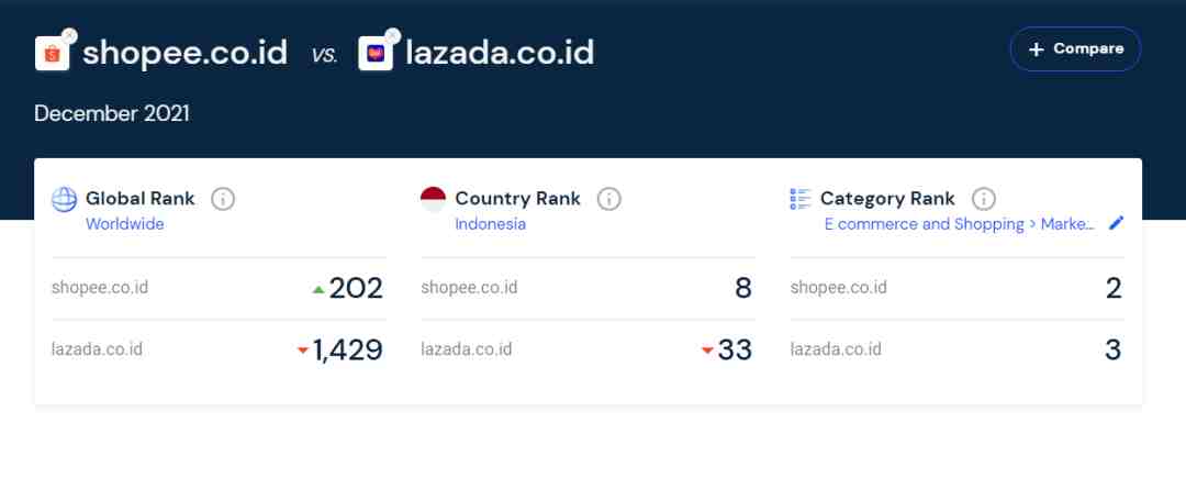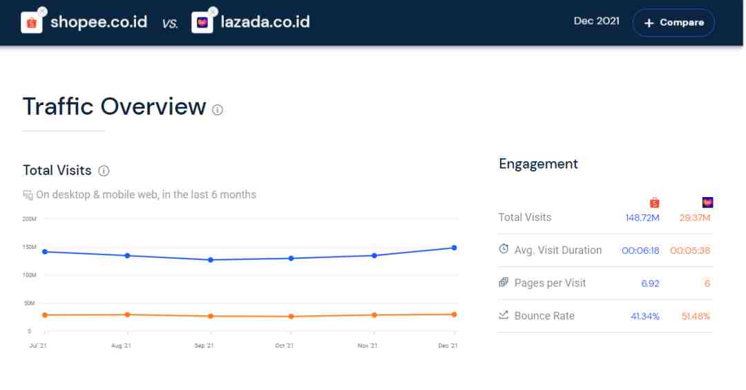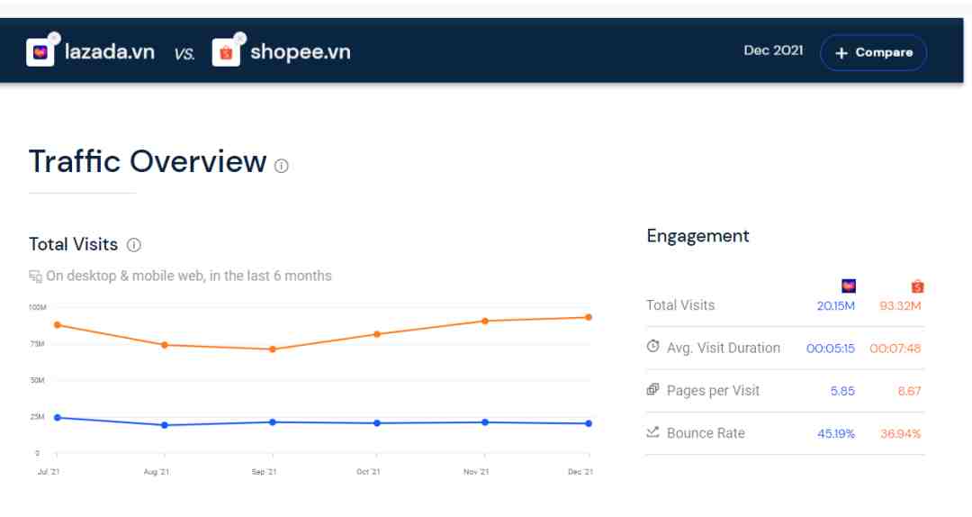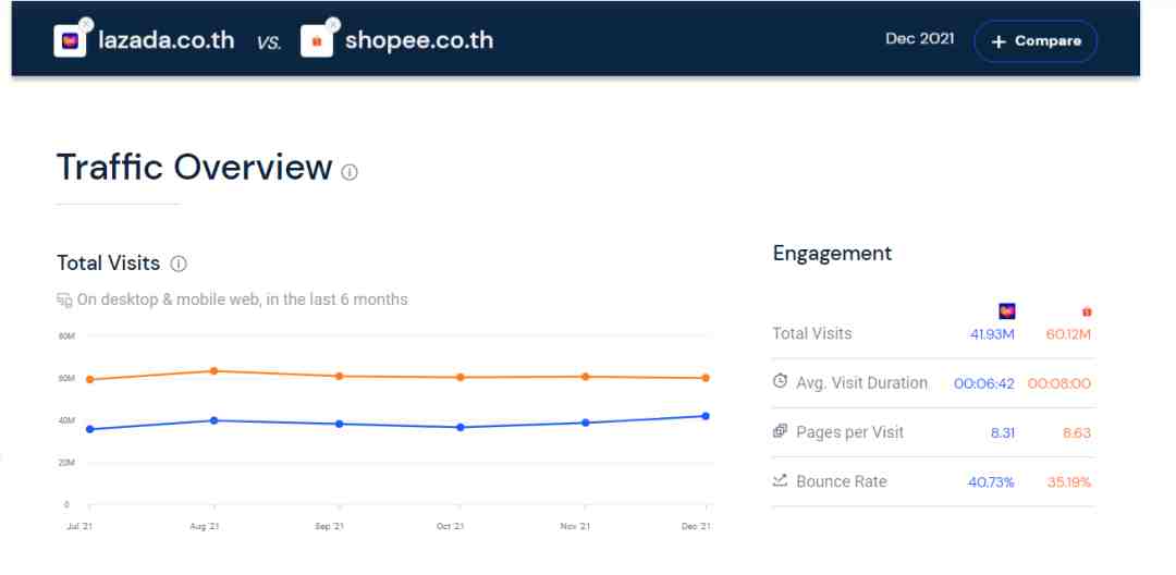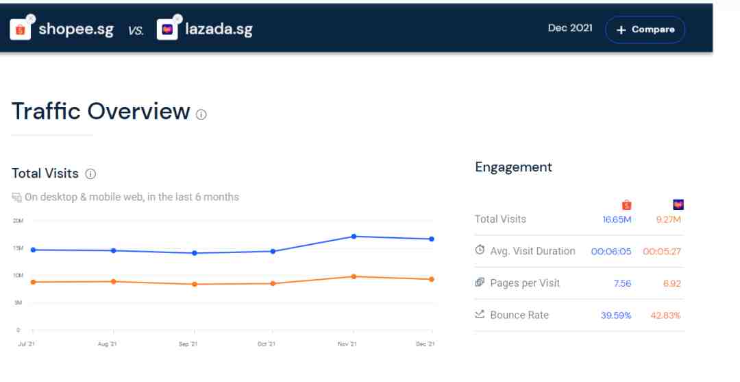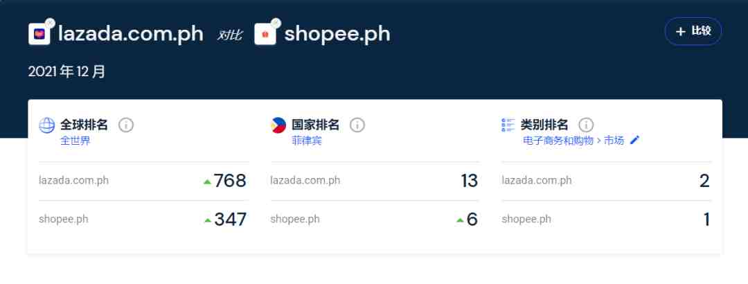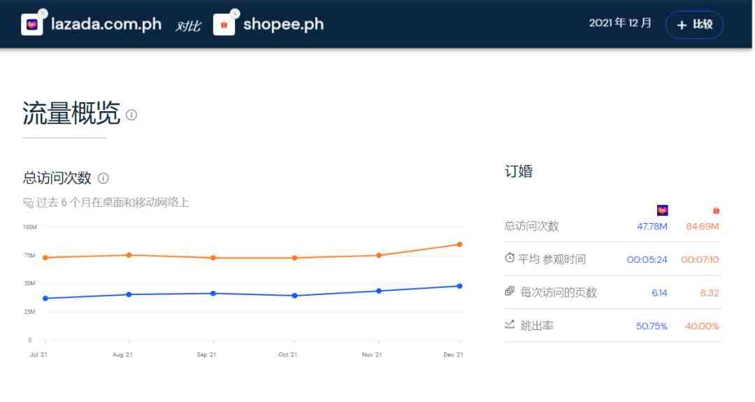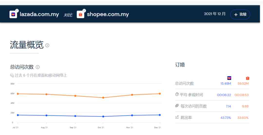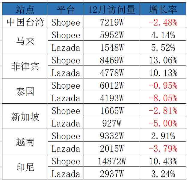 根据Similar Wed分析出了12月的lazada,shopee各站点的数据分析。