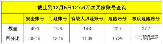 其中38.4%是安全账号,可疑账号12.4%、有较大风险账号11.3%、危险账号16.2%、极度危险账号21.7%。