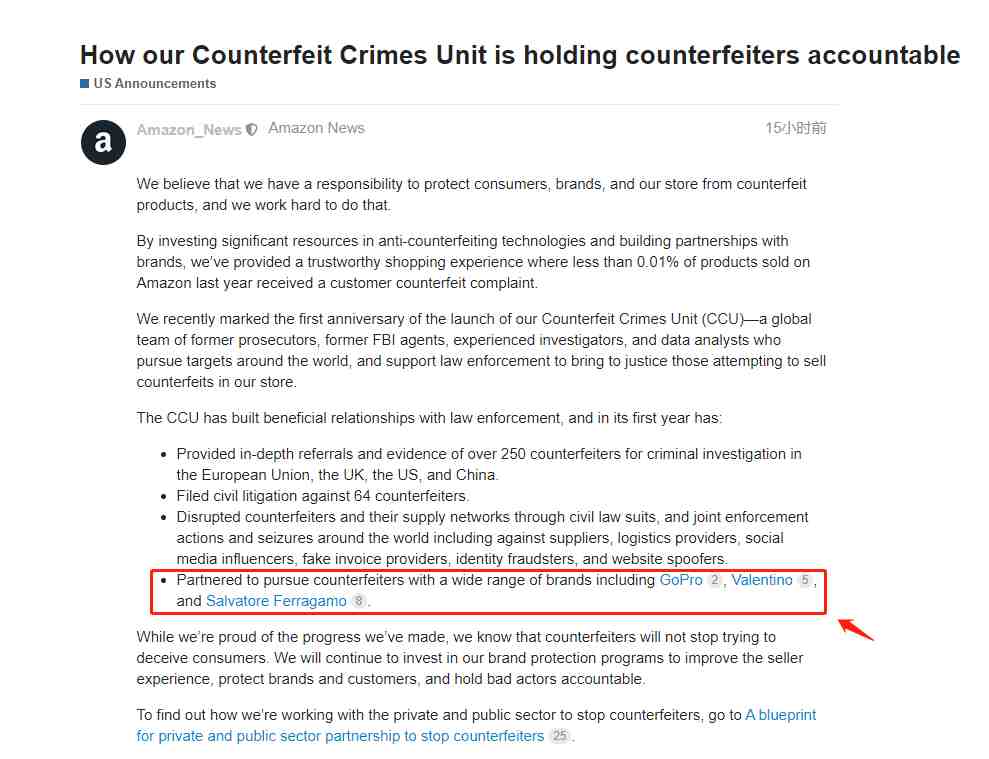 有不少知名品牌都曾与亚马逊联手打假: