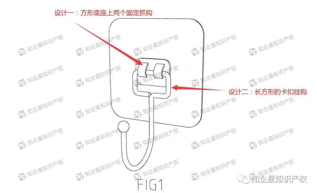 这款挂钩结构简单,无需打孔,采用无痕粘胶固定,挂钩可以180°旋转,使用非常方便,产品核心设计点在于:1、底座上的两个固定抓钩;2、长方形卡扣的挂钩设计。
