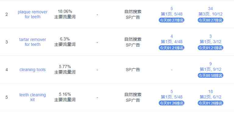 通过工具我们可以查询到,这个产品主要的关键词,广告位都比较靠前,在listing非常完整的情况下,通过广告拉动流量,这样既解决了流量的问题,同时listing能够保证点击率和转化率,那销量提升就是自然而然的事情了。