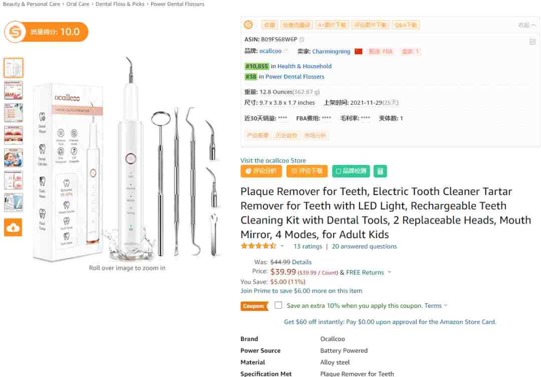这个产品上架时间不久,已经做到Health & Household类目一万多,Power Dental Flossers小类38名,预估月销量达到1107单,那它做了哪些优化动作呢?