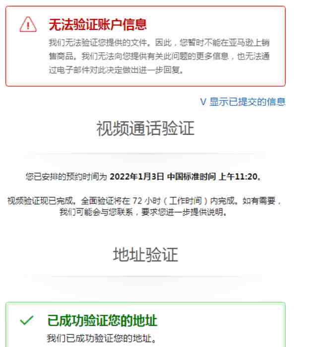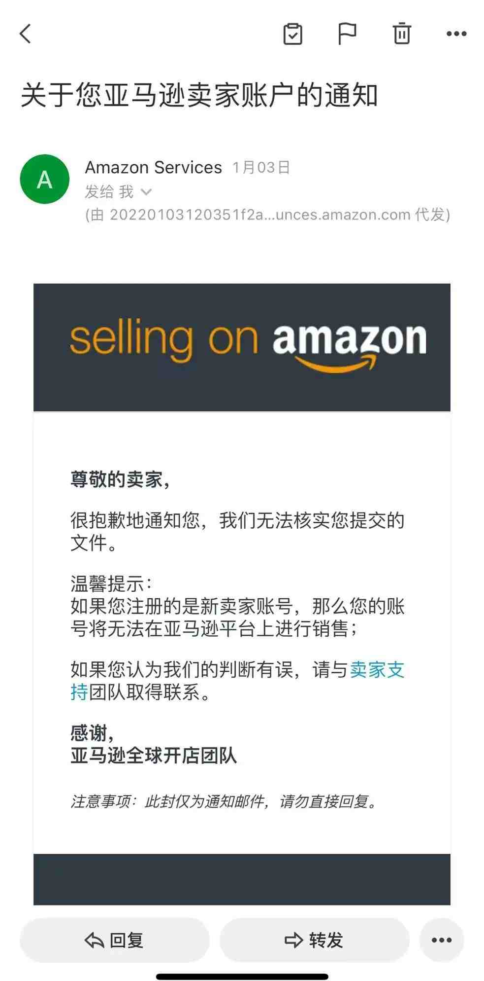在上上周用真实资料注册了亚马逊账号,顺利通过了明信片验证,在昨天也就是1月3号进行了视频验证,视频过程中也一切顺利。但是今天早上收到了亚马逊邮件,本以为账号顺利下来了,谁知道是没有下来,