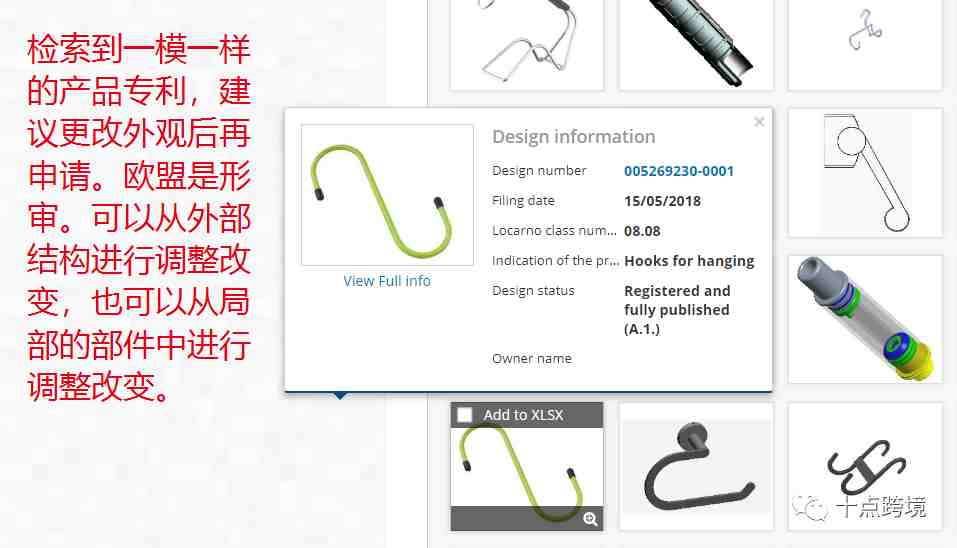 检索到一模一样产品的专利,建议更改外观再申请,否则售卖会有侵权风险。