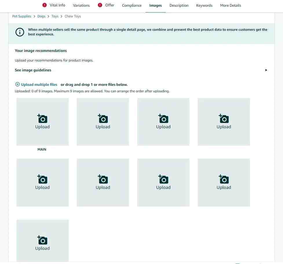 一条完整的亚马逊Listing的图片位置主要由1张主图和最多8张附图构成。