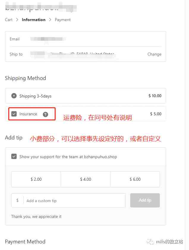 附加费用:小费 运费险 小费在外国比较是常见的尤其是在复购的过程中,对这次购物活动比较满意的时候还是愿意去支付一些小费的。运费险的话就类似于国内的运费险的,退货时免邮费的。