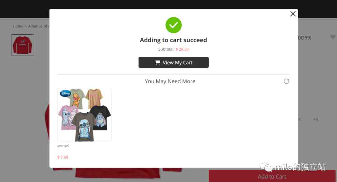 加购后的弹窗:配合插件 加购关联推荐类似于捆绑销售的一种