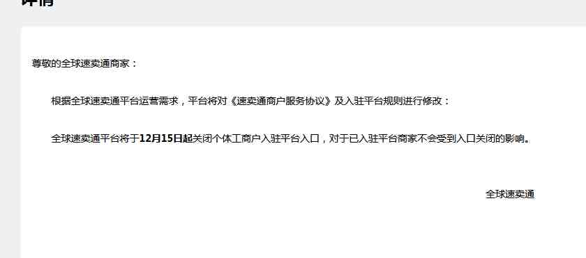 没错,速卖通于12月15日起将关闭个体工商户的注册入口,但是入驻的商家没什么影响!
