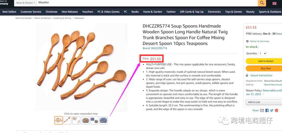 国内进价9元人民币,亚马逊英国站售价51.53英镑,合人民币435.64元,净利润120+,缺点:暂无