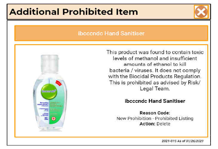 CB 卖家禁止售卖这个牌子的消毒液,不符合杀菌产品法规标准,不能上传和售卖,将会直接被 Listing 删除