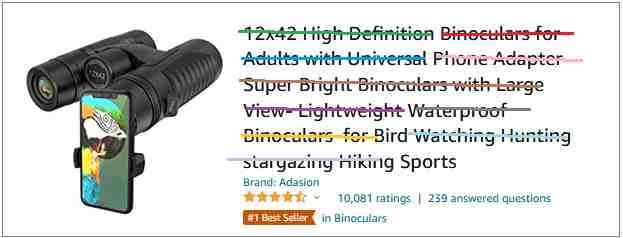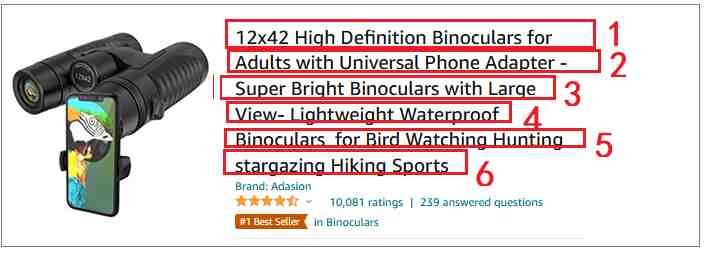 举个例子,假如我做的是下面这款望远镜产品,然后我现在想完全替换掉现在的title,那么我可以按照下图中的替换顺序一步一步的进行。