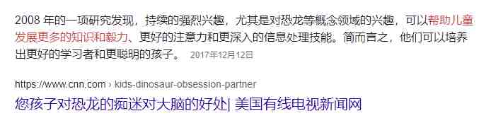 首先来看第一个问题,为什么恐龙元素的玩具普遍比较好卖?或者说为什么父母愿意给孩子买恐龙玩具?如果我说它跟科研结果有关你信吗?