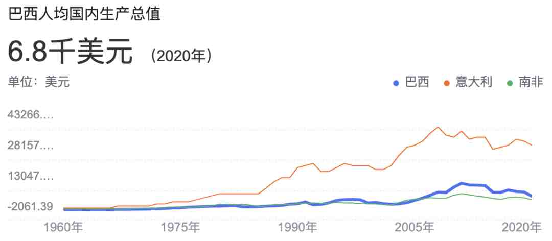 该国是金砖四国之一,2011 年的人均 GDP 就已经突破 1.3 万美元,但由于 2015 年以来经济出现严重下滑,致使 GDP 出现负增长,加之受疫情影响,2020 年人均 GDP 仅为 6800 美元,不过,即使如此,仍然高于目前东南亚的大多数国家。
