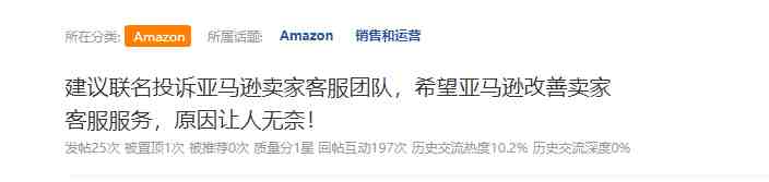 近日,知无不言论坛上一则名为《建议联名投诉亚马逊卖家客服团队,希望亚马逊改善卖家客服服务,原因让人无奈!》的卖家发帖引发了热议。