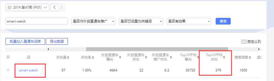 对比同行平均TOP10数据,查看他们点击次数多少(可勾选月数据)