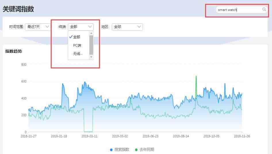 说明,主要查看PC端口和APP端的,另外个别词也参考下国家终端分布,如果发现非目标国家的占比太多,不推荐!