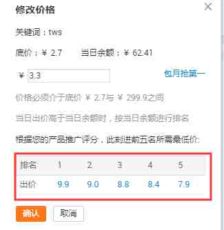 假如一个顶展词,Top10平均月点击是1500, 直通车第一名最高价是10块钱,则月费用=1500*10=15000 顶展词估算费用 15000*溢价%