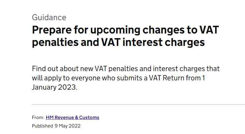 HMRC于2022年5月9日发布了一篇《为即将发生的增值税罚款和增值税利息费用变化做好准备》的指导,这篇指导里提及了对于 2023 年 1 月 1 日或之后开始的增值税期间,如果延迟提交增值税申报表或延迟缴纳增值税,则默认附加费将被新的罚款取代,而增值税利息的计算方式也将发生变化。