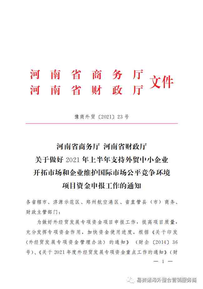 河南省商务厅 河南省财务厅 关于做好2021年上半年支持外贸中小企业开拓市场和企业维护国际市场公平竞争环境项目资金申报工作的通知