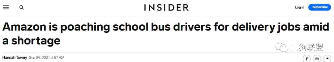 据报道,由于疫情期间网购需求激增,亚马逊面临货运司机短缺,不得不提高司机工资,导致校车司机纷纷转行,美国出现校车司机荒。