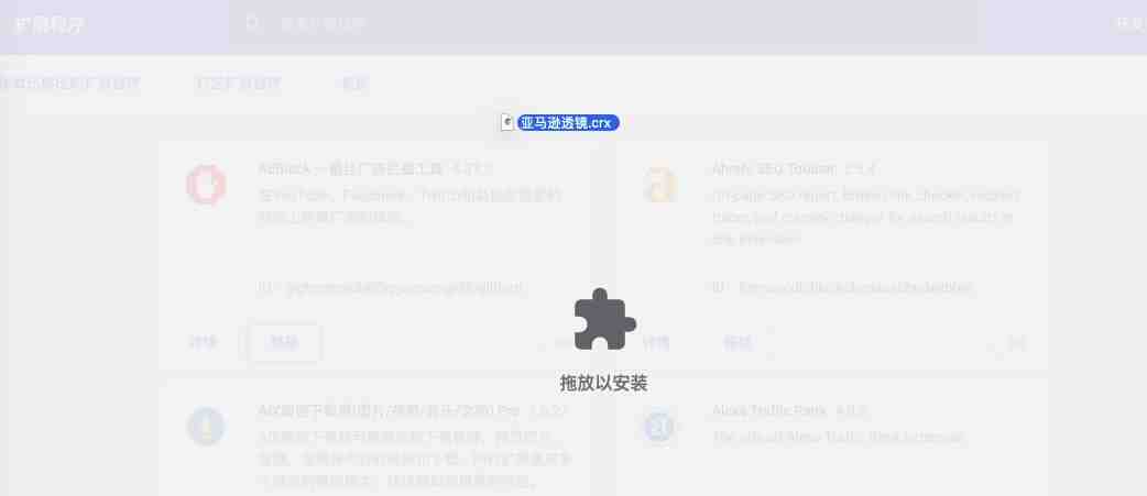 3、找到下载并解压后的插件,把插件“拖拽”到此处