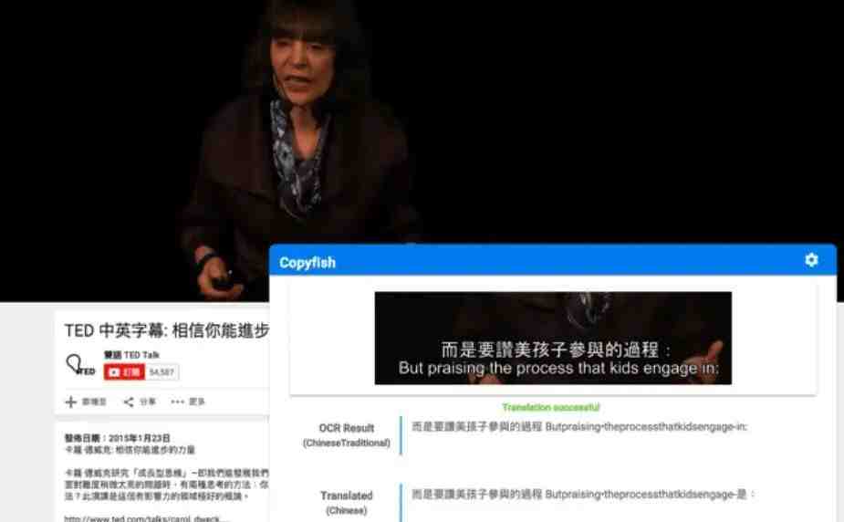 与手机APP不同,Copyfish不仅免费支持对网页,视频,PDF进行文字识别,还能够直接进行在线翻译。