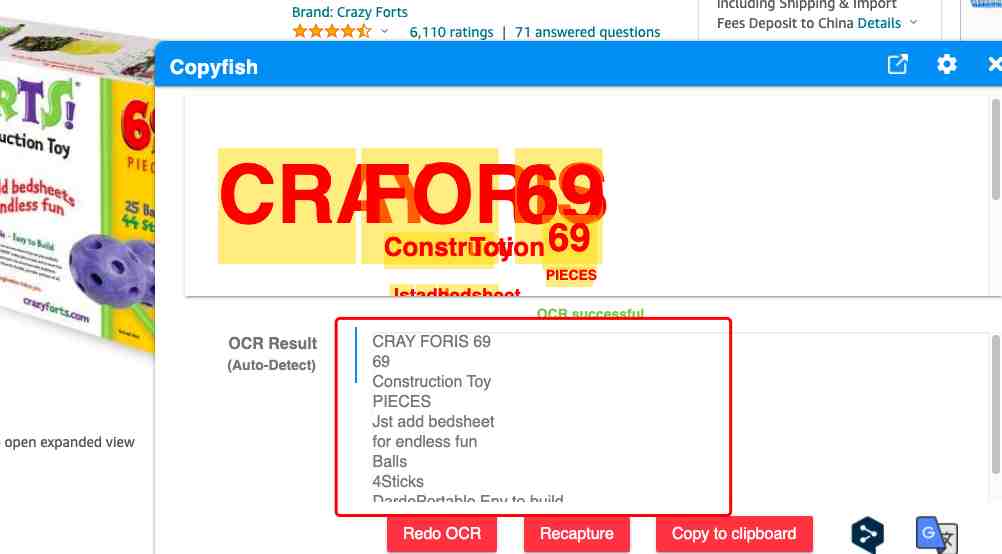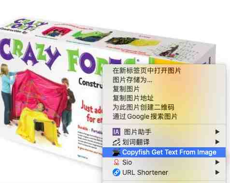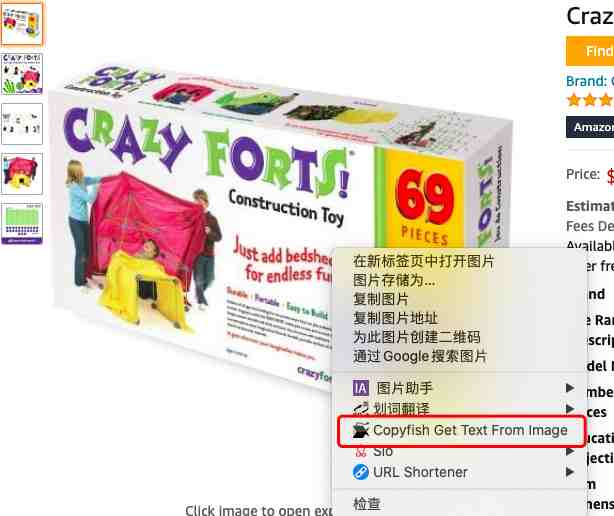 这是我实操的效果图,看中某款亚马逊的产品图片,想把图片中的文字复制下来,只需要点击鼠标右键,唤起插件。