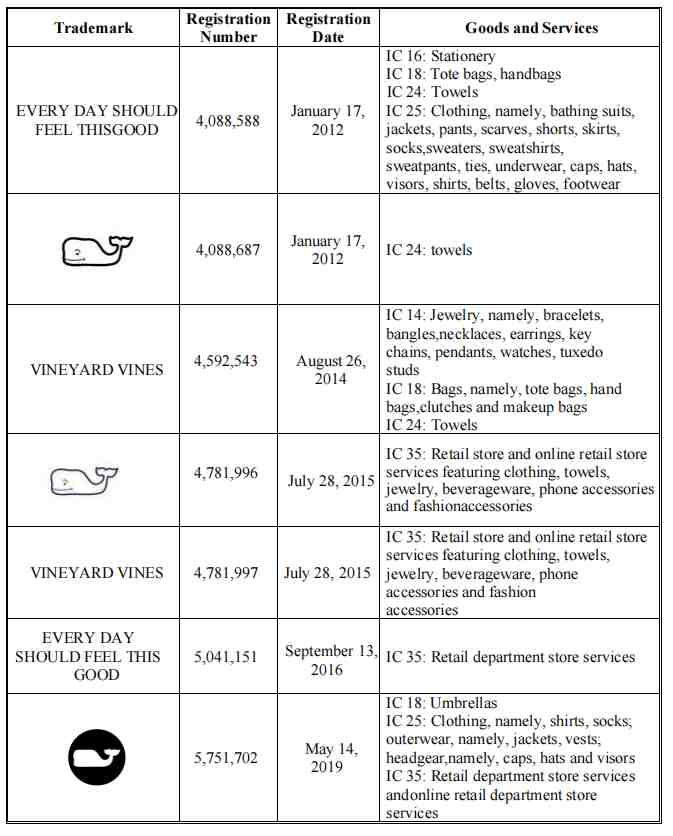 品牌权利人为VINEYARD VINES, LLC,最新的案件在2021年9月22号发起,案件编号21-cv-61991。